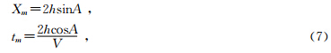 在图 7上可以得到tm=16 ms,xm=25.6米,又已知断层倾角的余弦和正弦值cosA=0.769、sinA=0.64,根据公式(7),可以计算得到地震波的传播波速为V=1923 m/s.