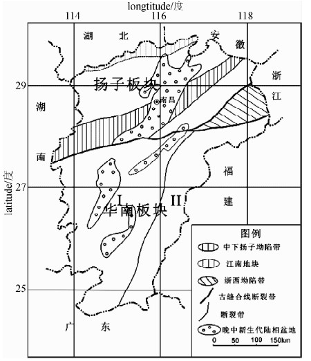 (1)东经115°~116°、北纬28.2°~29°,该地区是一陆相盆地和江南地块拗陷带.