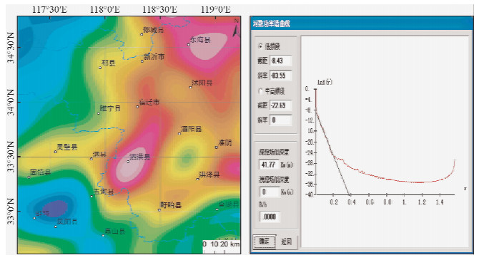 ![]() | 图 5 布格重力异常4阶小波逼近图及对数功率谱Fig. 5 4 order approximate images and power spectrum |