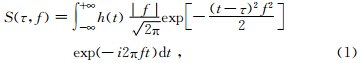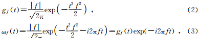 其中t和τ是时间,τ为窗函数的中心点,控制窗函数在时间轴上的位置;f是频率.在S变换中,高斯窗函数和基本小波被分别定义为