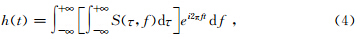 由此可见,S变换的时窗宽度随频率呈反向变化,即在低频段时时窗较宽,从而获得较高的频率分辨率;而高频段时时窗较窄,可获得较高的时间分辨率.S变换中的基本小波由简谐波与Gaussian函数的乘积构成,基本小波中的简谐波在时间域仅作伸缩变换,而Gaussian函数则进行伸缩和平移.这一点与连续小波变换不同,在连续小波变换中,简谐波与Gaussian函数进行同样的伸缩和平移.S变换克服了STFT窗口固定不变的缺点,又引进了小波的多分辨率分析,结合了两者优点又克服了它们的不足.S变换与傅立叶谱有直接联系,其反变换可以通过求傅立叶反变换实现: