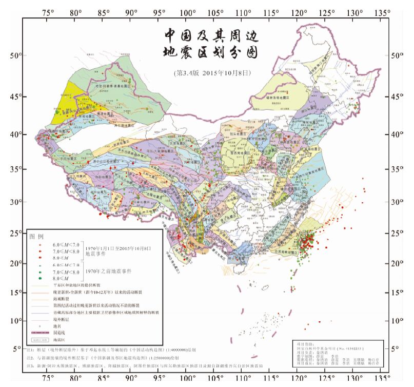 图 1 中国及其周边地震区划分图(3.4版) Fig. 1 Division map of seismic zones in China and its adjacent areas(Version 3.4) |