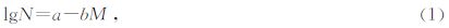 Gutenberg and Richter(1950)提出的震级-频度关系表达式为
