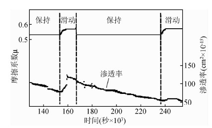 (4)震后及间震期流体矿物沉淀、水-岩反应、重结晶及压溶等作用胶结并逐渐愈合裂隙导致渗透率下降,同时流体压力逐渐积累,直至下次地震破裂. 周期性地震活动过程使得断层带的渗透性和流体压力表现为此消彼长的交替性变化过程.