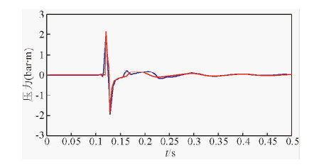 图 4 90 in3GI枪的远场压力子波(红色)与Sercel公司的实测子波(蓝色)对比 Fig. 4 Comparison between the far field pressure wavelet(red) and Sercel INC’s measured wavelet(blue) of 90 in3 GI gun |