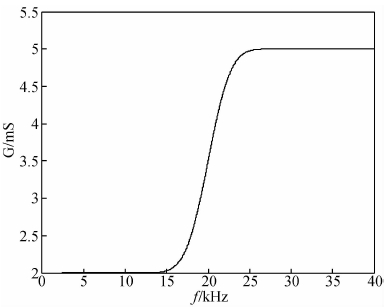即在(1)式中,参数γ包含了地层电导率,现在,地层电导率为频率的函数σ(ω),如图 6所示,则相应地,γ也是频率的函数.这样,最终的响应曲线中便包含了电导率随频率的变化关系.
