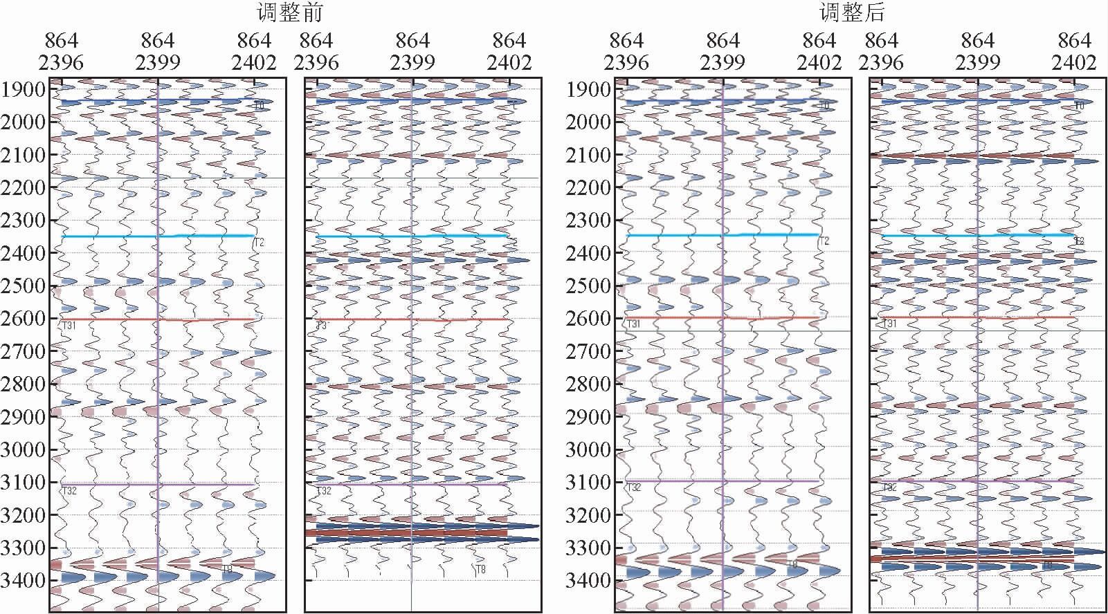 4.3 时深调整过程中,在浅层,应以整体平移为主;在深层,应以局部拉伸为主;在断层和靠近高速地层处,也是以局部拉伸为主.
