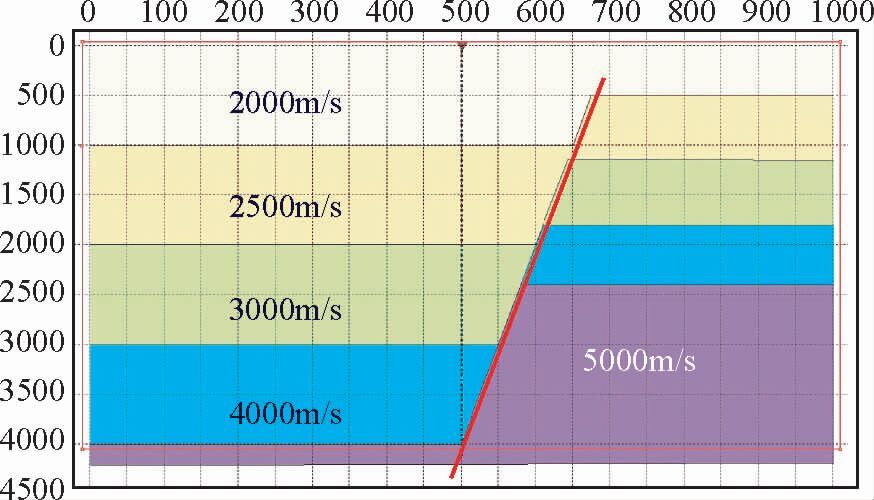 图 4 钻穿断层的井正演模型 Fig. 4 The forward model that well drills through the fault |