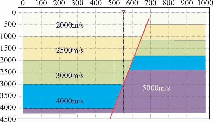 图 5 靠近高速地层的井的正演模型 Fig. 5 The forward model that well is close to the high velocity stratum |