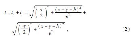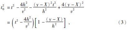 由叠前时间偏移脉冲响应椭圆方程和双平方根走时方程出发,根据图 11中的几何关系可以得到DMO校正后反射的双程走时t0与双程走时t的关系式为