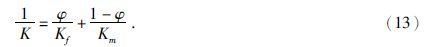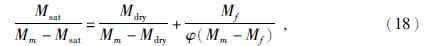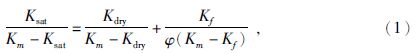 其中Ksat是饱和岩石的体积模量,Kdry是干岩石的体积模量,Km是基质的体积模量,Kf是孔隙流体的体积模量,φ是孔隙度.