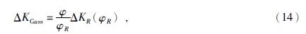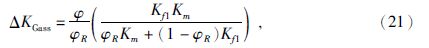 其中:ΔKGass是当岩石饱和不同的流体时,根据Gassmann理论预测的饱和岩石体积模量的变化,ΔKR是在临界孔隙度下,用Reuss平均计算的当岩石饱和不同流体后的体积模量的变化,两者成线性变化.
