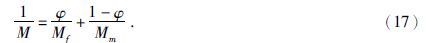 可见方程(14)和方程(16)有着相同的形式,同时根据方程(15)的近似结果,假设在一定的孔隙度范围内,方程(15)近似成立,因此可以将纵波模量代入到Reuss平均方程和Gassmann方程中可得: