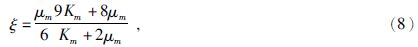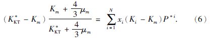 初始条件是K*(0)=K1和μ*(0)=μ1,其中K1和μ1分别为初始材料的体积模量和剪切模量,K2和μ2分别为逐渐加入的包含物的体积模量和剪切模量,y为包含物的含量,等于孔隙度,P和Q是影响因子.