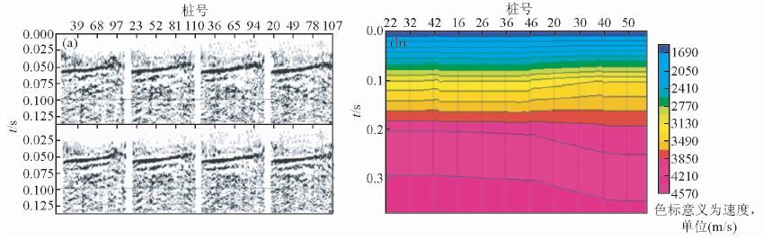 图 10 剩余静校正结果和叠加速度体 Fig. 10 Result of residual static correction and the stacking velocity cube |