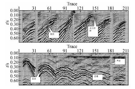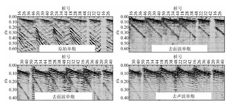 本区地震资料主要受声波、 面波、 多次折射等噪声的干扰,进行叠前去噪是资料处理流程中的重要一步(图 9).
