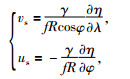 式中,f=2ω·sinφ为科氏力系数,ω为地球自转速率,vs和us分别为地转流速度的南北向分量(北向为正)和东西向分量(东向为正),λ, φ分别为经度和纬度.