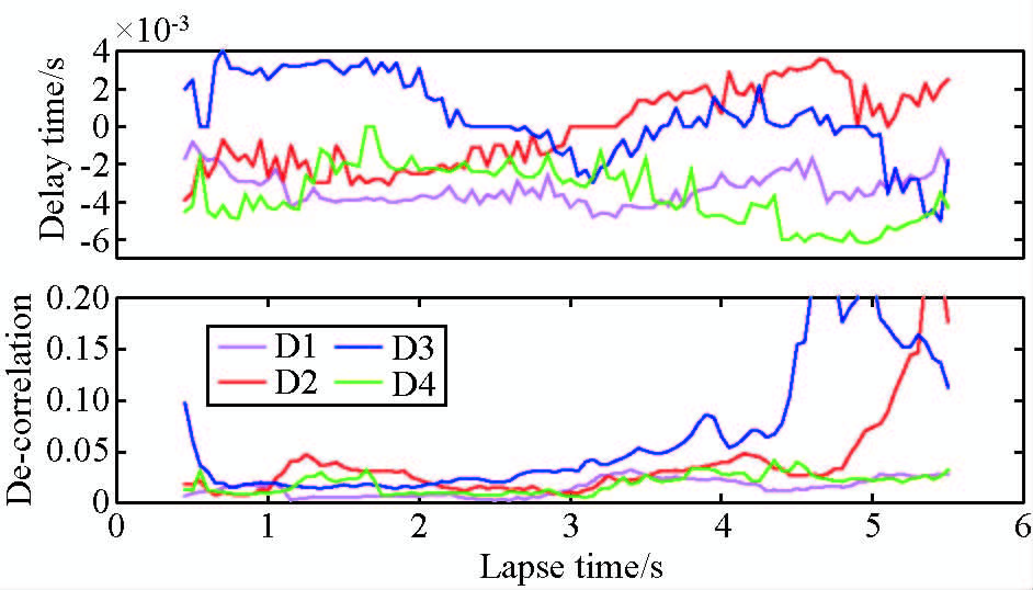图 10 4对重复地震的走时延迟和不相关系数变化 Figure 10 Variations of delay time and De-correlation |