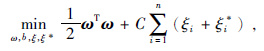 其中,φ为非映射函数;ω为函数平面法向量;b为函数平面的偏置;Τ为转置矩阵;ε为误差概率;ξi,ξi*为在误差ξ约束下训练误差的上限;ξ为一正数,可根据希望达到的精度而事先设定;C为惩罚因子.设定约束条件为