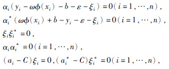 其中,K(xi,xj)=φ(xi)·φ(xj)为核函数,ai和ai*为拉格朗日算子.