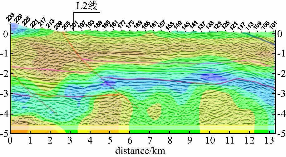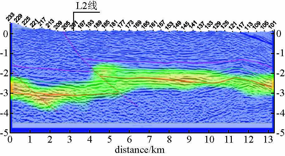 图 15 L2测线综合地质解释剖面 Figure 15 L2 line comprehensive geological interpretation profile |