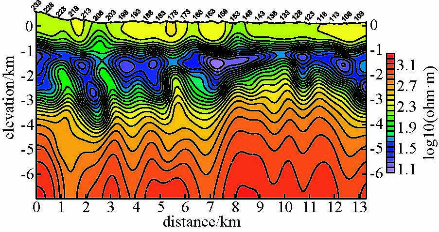 (1) 以磁场数据自由反演的结果为电性初始模型,见图 7.