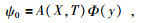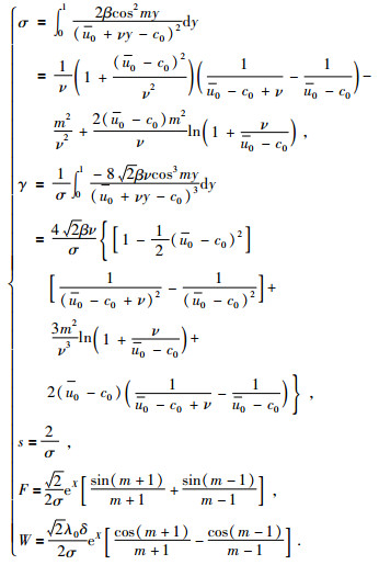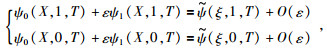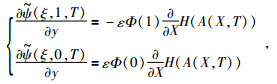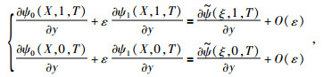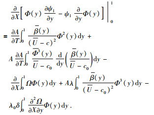 本阶问题中出现了X方向的频散效应, 而Jacobi算子项在本阶问题中出现了非线性效应, 因此它们分别为弱频散效应和弱非线性效应, 用Φ(y) 乘以方程 (16) 的两端, 并在变量y的区间[0, 1]上积分, 公式为
