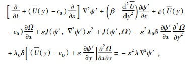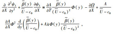 其中c0相当于线性Rossby波在切变基本流U(y) 中当波长很长时的波速, 为了使地形强迫和非线性问题达到平衡.设: