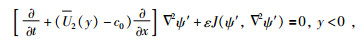 方程 (7) 表示在区域0≤y≤1的方程, 它的边界线为y=0, y=1, 根据Ono (1981),在外部区域y < 0和y>1不考虑地形, 且取柯氏力f=0.由 (7) 式知外部区域方程为