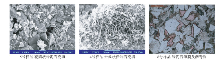 图 6 研究区粘土矿物充填 Figure 6 Clay mineral filling in study area |