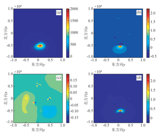 (a)ΔT;(b)北方向梯度 ;(c)东方向梯度 ;(d)垂向梯度 .