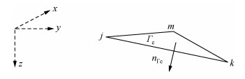 在图 5中所示的坐标系中三角元的单位法向量nΓe可以表示为