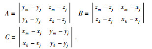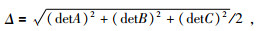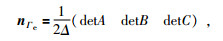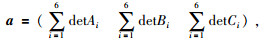 式(10) 和(11) 中Δ为三角元的面积,det表示求行列式的值,A、B、C分别为