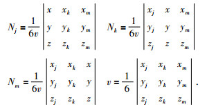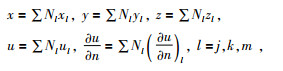 其中Nj、Nk、Nm是形函数,公式为
