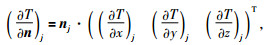 每个三角元的法方向的确定很简单,使用三角单元三个顶点坐标(xj、yj、zj)、(xk、yk、zk)和(xm、ym、zm)确定的平面单元,求其向“下”的单位法向量(向“下”的法方向即磁场调和域的外法线方向).