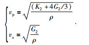 取得含水合物岩层的体积模量K2和剪切模量G2,按照速度与弹性模量的关系式(10),可以计算得到水合物地层模型的纵波速度vp和横波速度vs,公式(10) 为