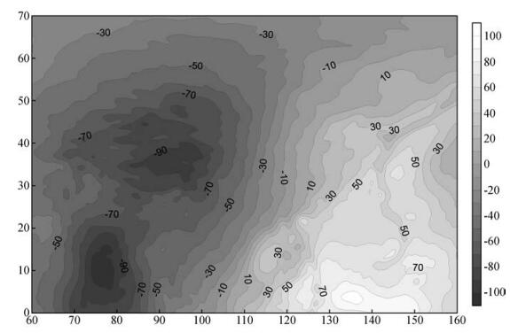 图 1 欧亚板块均衡大地水准面异常图(单位:m) Figure 1 Isotatic geoid anomaly of Eurasia plate |