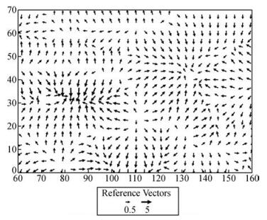 图 3 欧亚板块中尺度地幔对流应力场(单位:MP)长度表示应力大小、箭头表示对流方向. Figure 3 Medium scale mantle convection stress field of Eurasia plate |