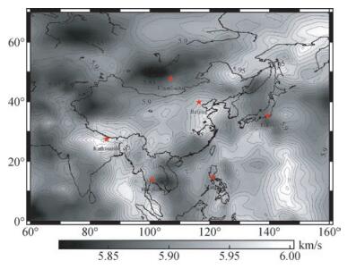 图 4 欧亚板块上地幔S波速度(Simmons et al., 2010) Figure 4 Upper mantle S wave speed of Eurasia plate (Simmons et al., 2010) |