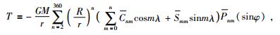 Runcorn建立了联系全球大地水准面异常与全地幔热对流的基本模型, 给出了地幔对流作用在岩石圈底部的应力方程(Runcorn,1967),引入了地幔流位场T的概念.地幔流位场的水平梯度就相当于地幔流应力,其高、低值中心分别对应于地幔物质能量的汇聚、发散中心.地幔对流的位场球谐系数表达式为