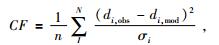 di,obs-di,mod分别代表第i个像素的观测位移和模拟位移,σi为N个点的标准差.