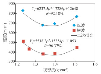 图 1 构造煤纵波与横波的速度关系(据王赟等, 2014) Figure 1 P-versus S-wave velocity of tectonic coal |