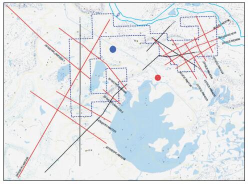右边的大区块是无锡以北地区,设计测线9条,共197.38 km,施工设计满覆盖长度572.28 km.该区块多分布城镇工厂,交通错综复杂,而且农作物众多,电网输气管道等基础设置密集,炮点检波点设置困难,而且安全考虑要求高;就地表条件来讲,锡北地区地表出露主要为第四系黑沙、黑泥、黄胶泥、沙砾岩.