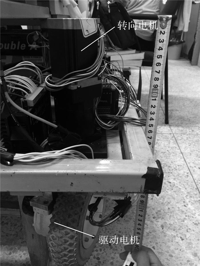 4 机器人全向移动实验验证机器人全向移动是指机器人能够沿着任意一个方向进行移动。本文中机器人全向移动功能主要是通过机器人的横向移动实验来验证,通过记录机器人从静止到实现横向移动的位置变化来验证机器人全向移动功能的有效性,并且通过记录各个驱动轮以及同步转向机构的运动参数来验证机器人运动模型的准确性。