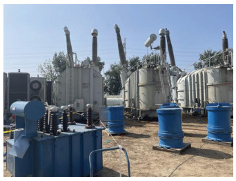 图 10 被试变压器及加压设备 Fig. 10 Transformer under test and equipment applying voltage |
