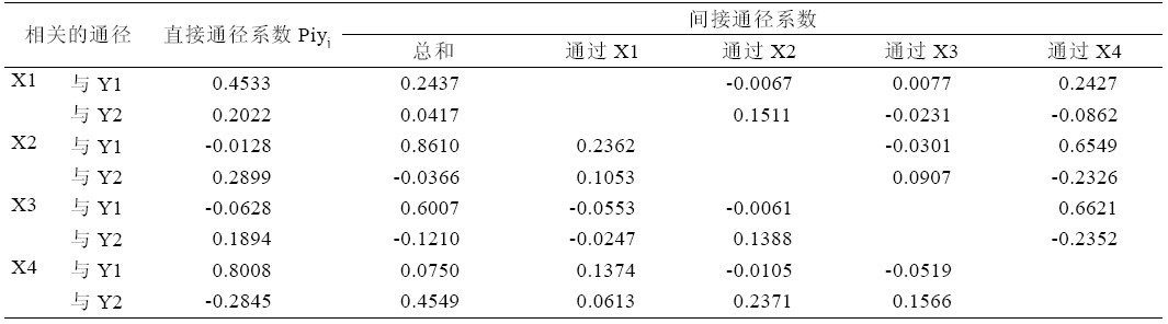 遗传通径分析所得的直接通径系数和间接通径 系数列于表2。