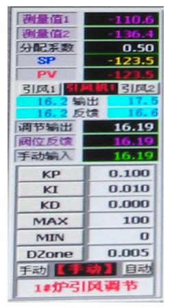 炉膛负压的稳定是通过炉膛负压、引风量2 个 变量参数信号经过自控系统内各功能块的作用,控 制其引风量来实现的,图4 为为引风机风门闸板控 制操作界面。