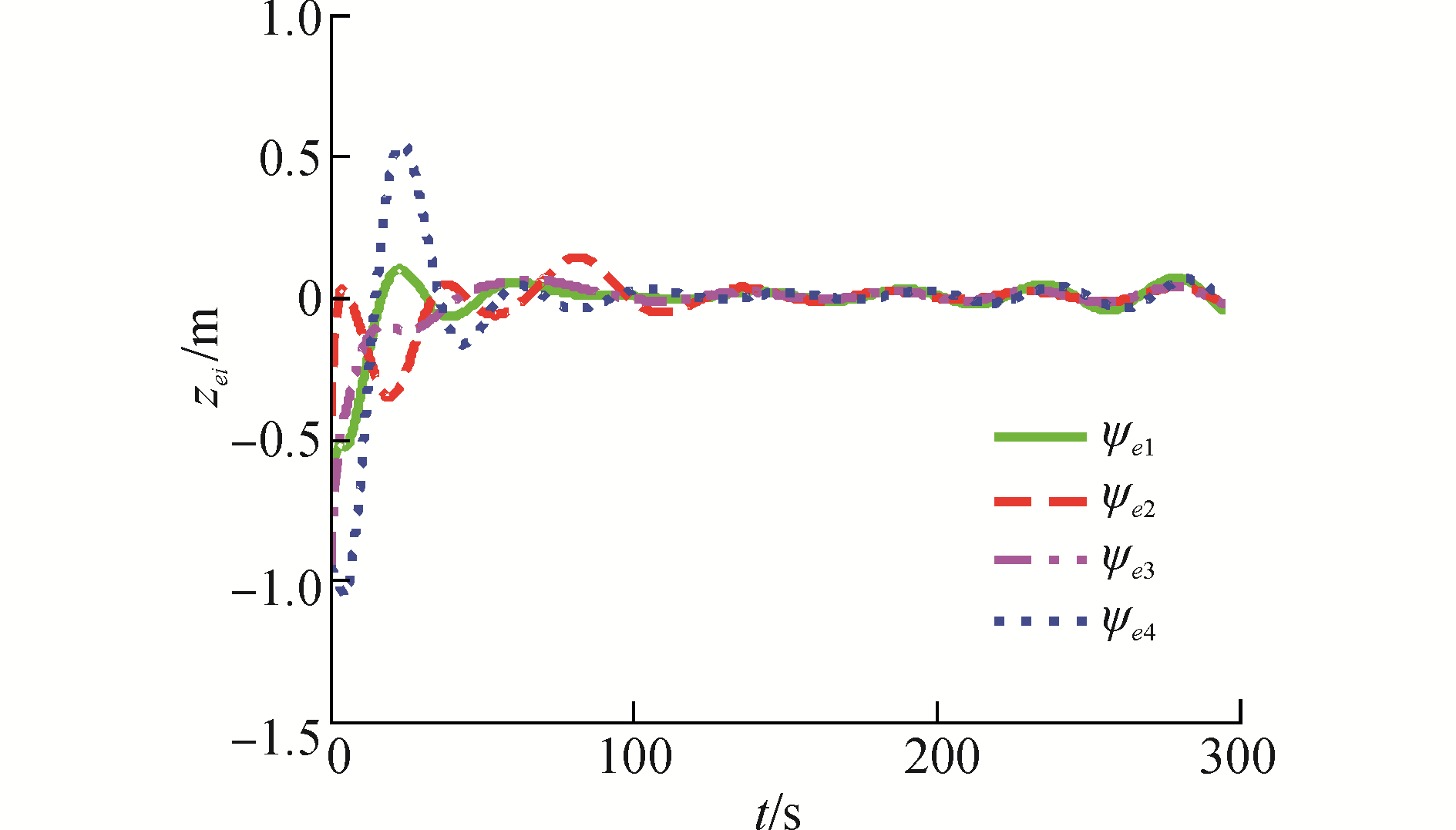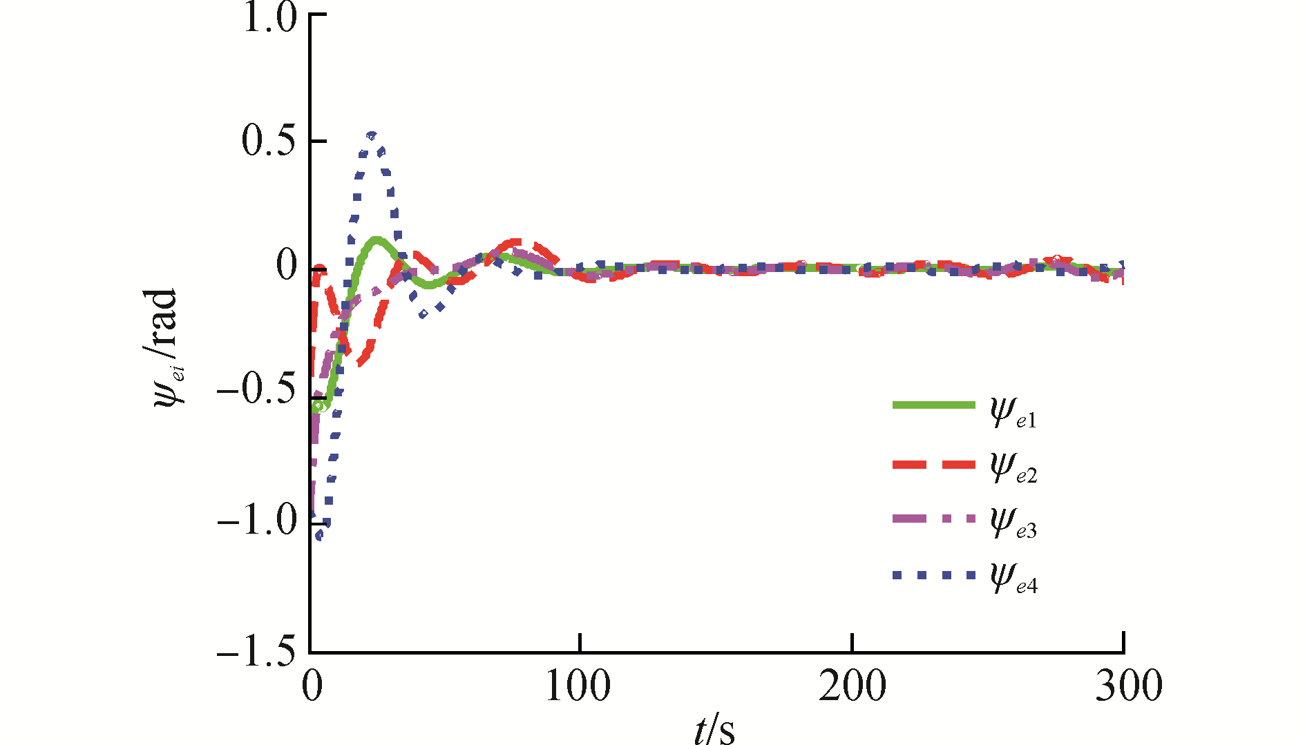 $ \mathop {\lim }\limits_{t \to \infty } {\psi _{ei}} = 0, \mathop {\lim }\limits_{t \to \infty } {\psi _{ei}} = {\psi _{ej}}\left( {t - {\varepsilon _{ij}}} \right) $ (55)