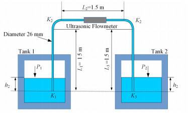 1 物理模型图 1为标定平台简化物理模型。假设熔盐在管道中稳定流动(标定平台也是为得到稳定流动的熔盐),由于熔盐为不可压缩的流体,在管道进口和出口可列出其流体伯努利方程: