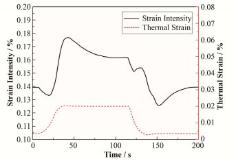 图 6 包壳应变强度和热应变随时间的变化 Figure 6 Strain intensity and thermal strain of cladding as a function of time. |